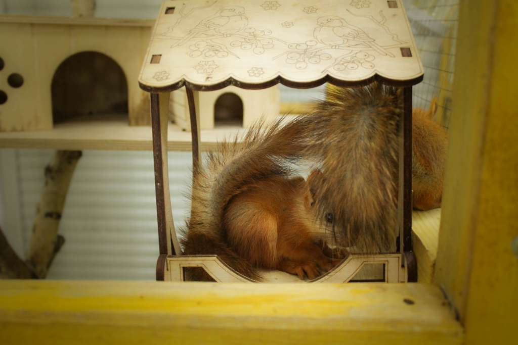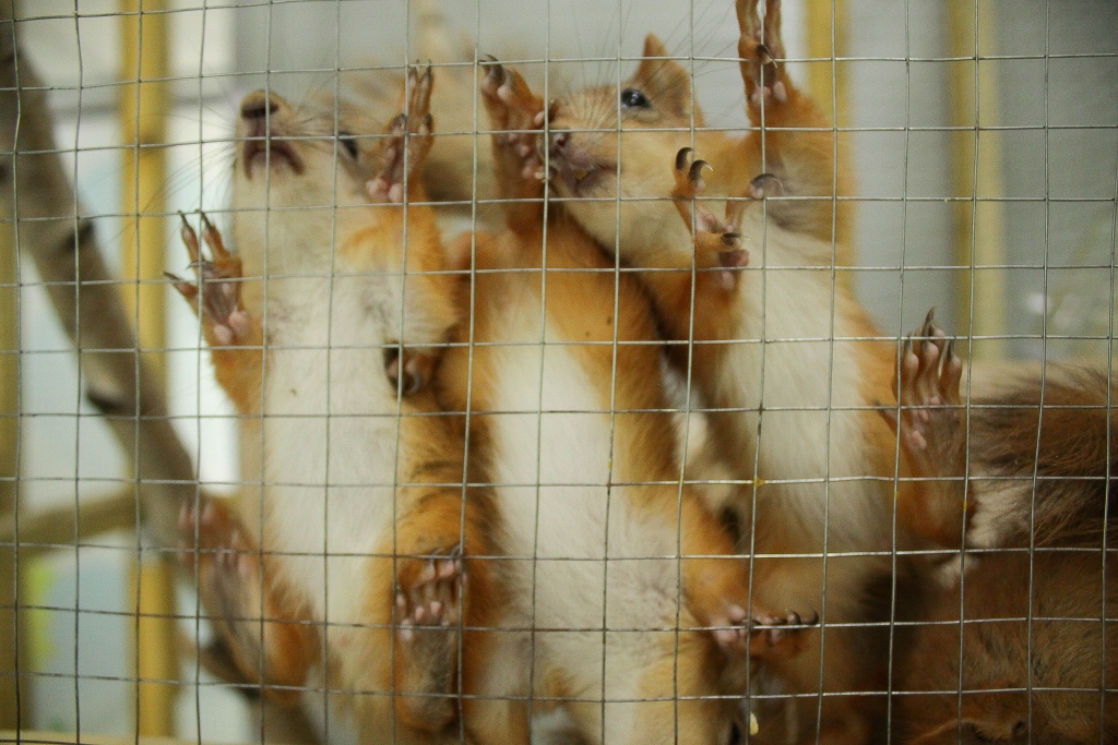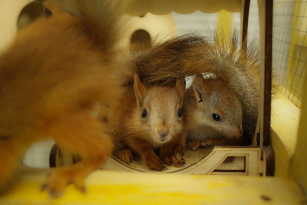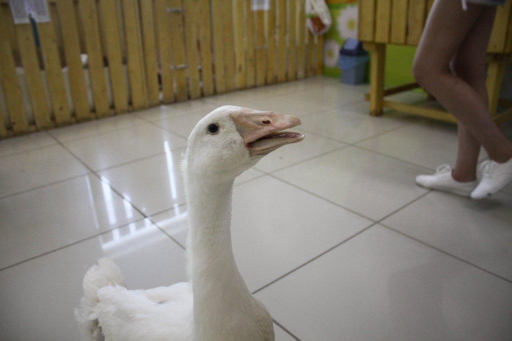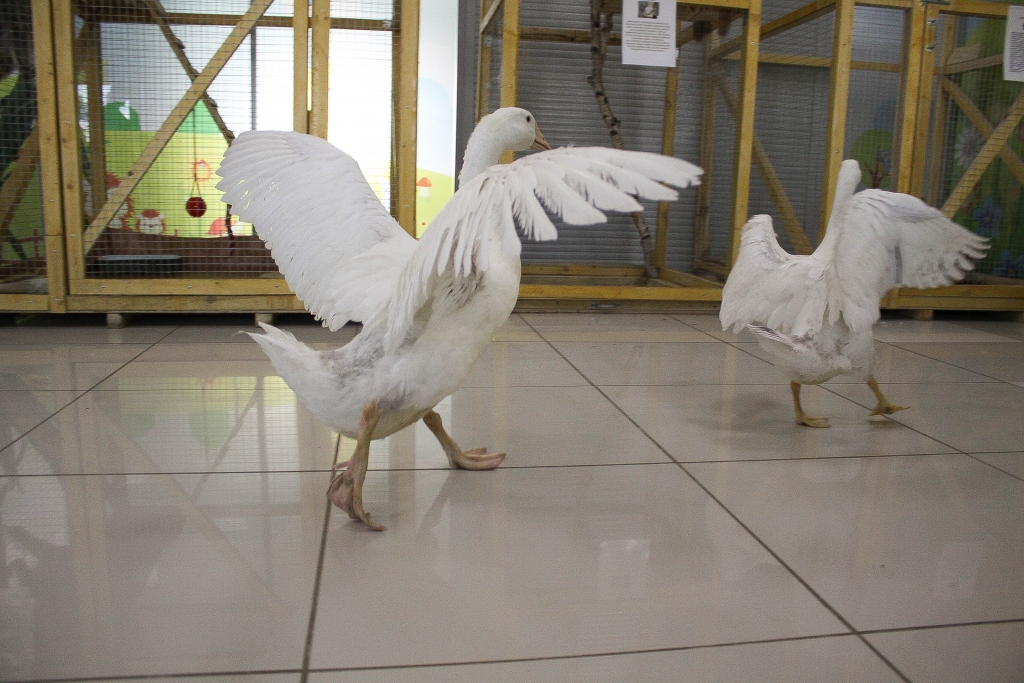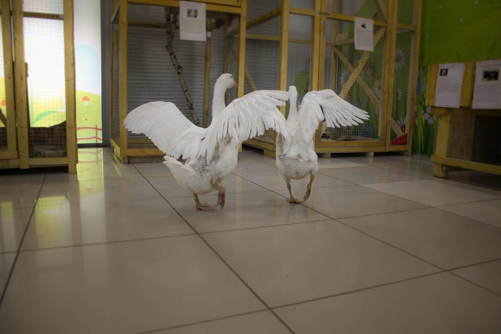 Кроме них в мини-зоопарке есть еще черепаха, крысы, морские свинки и хомяки разных пород, японские курочки и китайский смешной петух, попугаи, белые гуси, белка и шесть маленьких бельчат, напоминающих своей активностью хаотичное движение частиц (белочки рождены в неволе, поэтому видеть удивленных и вскрикивающих от восторга людей – для них привычное дело).