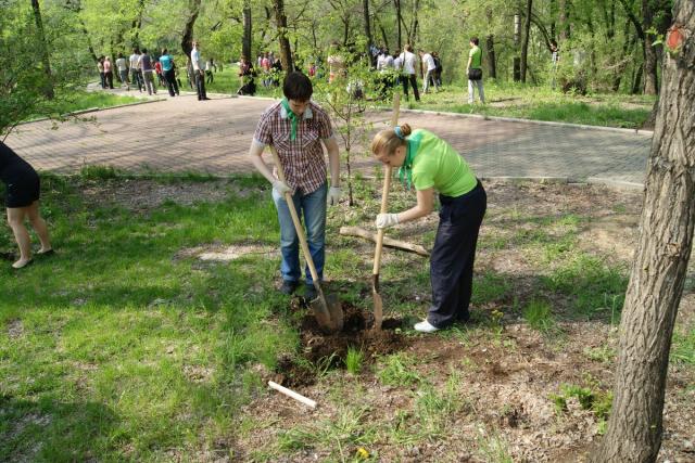 Студенты Хабаровска высадили более 100 деревьев в парке "Динамо" (ФОТО)