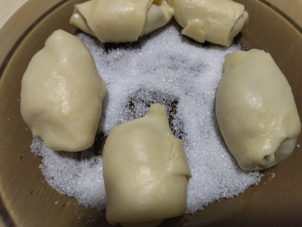 Рогалики окунуть в сахар.