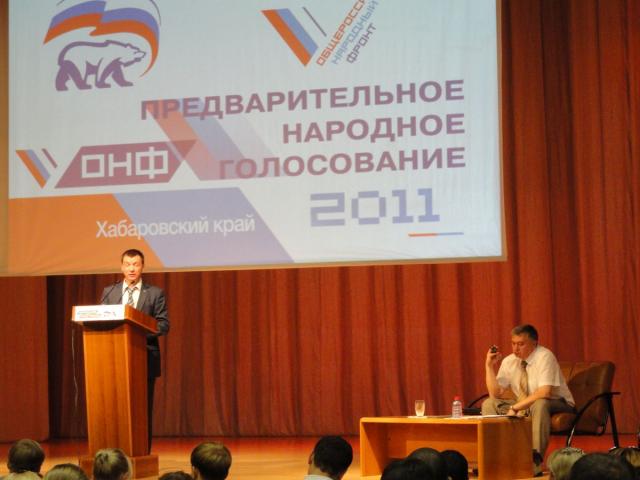 Стоит отметить, что это - заключительная площадка предварительного "народного голосования", которая проходит в Хабаровске. В ближайшую неделю участники праймериз смогут побороться за первые места в "народном рейтинге" в городах Хабаровского края Николаевске-на-Амуре, Советской гавани и рабочем поселке Переяславка.