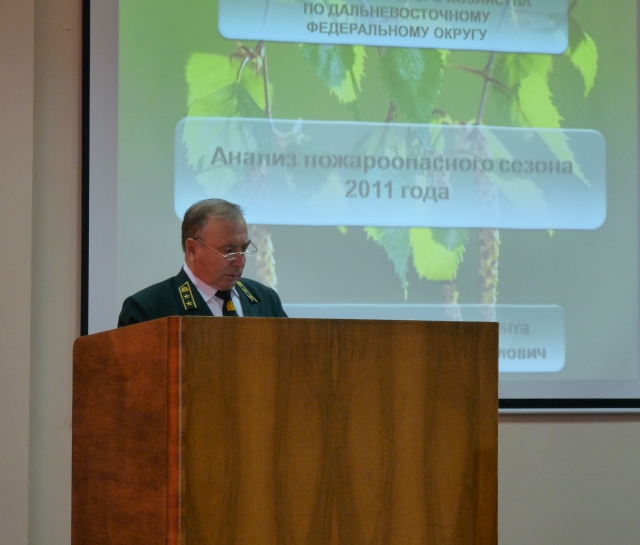 Владимир Коломыцев в своем докладе обозначил большое количество вопросов, которые решались в 2011 году всеми органами лесного хозяйства округа. Исходя из его слов, существуют проблемы в таких областях работы, как мониторинг, заготовка семян, противопожарная пропаганда и множество других. Он призвал участников коллегии обратить внимание на вопрос большей открытости в области отношений с общественностью через средства массовой информации, ведь это самый действенный метод пропаганды. В пример он поставил пресс-центр МЧС, ведь о действиях этой структуры знает все население, благодаря оперативности, открытости, полноте освещения многих аспектов деятельности.