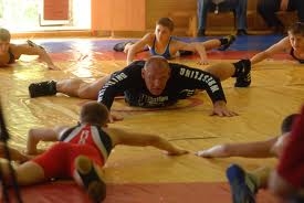 Началась тренировка, как и положено, с разминки, после которой Александр Карелин разделил борцов на пары: