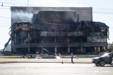 Руины здания театра после пожара. Фото: Юлия Матреницкая, ИА AmurMedia