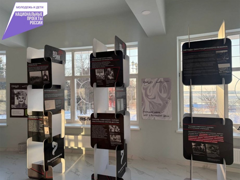 AmurMedia, 20 ноября. В Молодёжном досуговом центре Хабаровска открылась передвижная выставка "Без срока давности" (0+). Её задача — привлечь внимание молодых жителей края к ключевым страницам истории страны и судьбам её народа. Проект реализуется в рамках нацпроекта "Молодёжь и дети", направленного на развитие патриотического воспитания, сообщает пресс-служба правительства края.