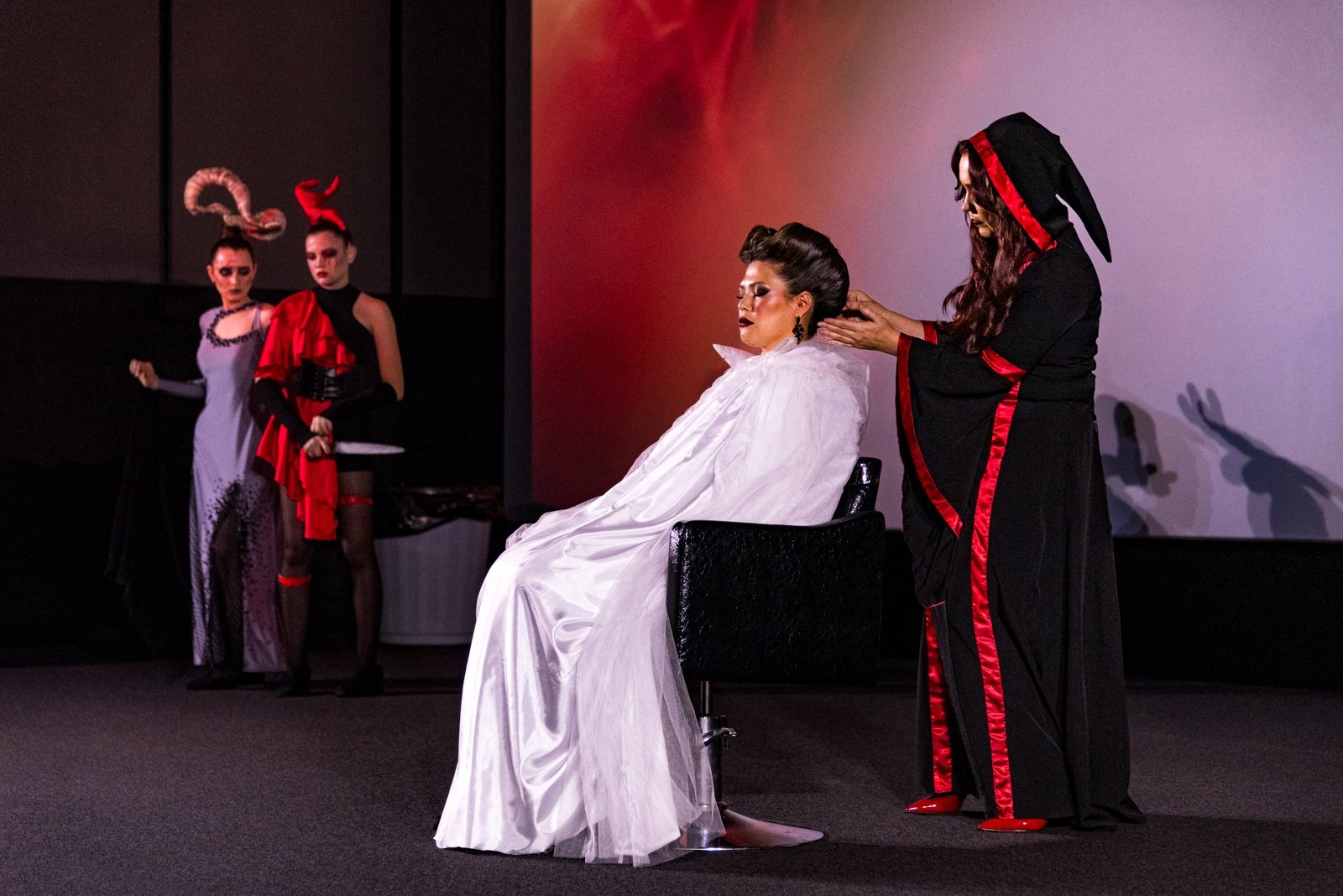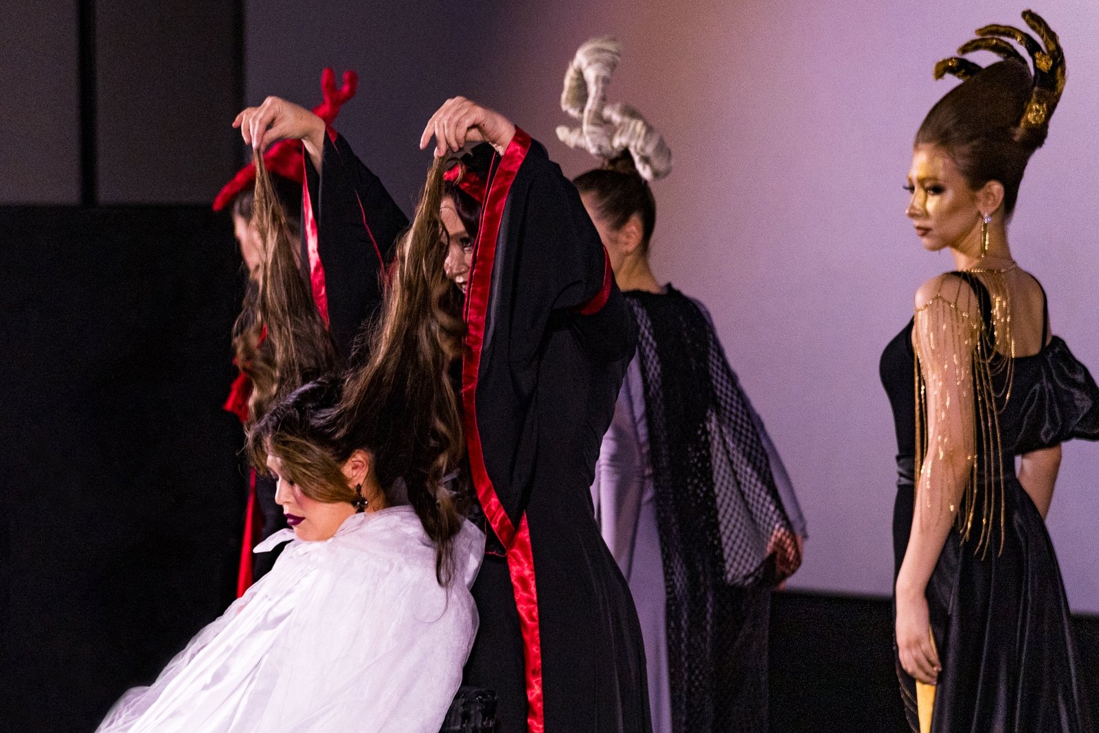 В главном зале царила атмосфера творческой лаборатории: где-то поправляли складку на платье модели, рядом флорист добавлял последний штрих в композицию, а визажист лёгким движением кисти расставлял финальные акценты на лице девушек, готовящихся к выходу.