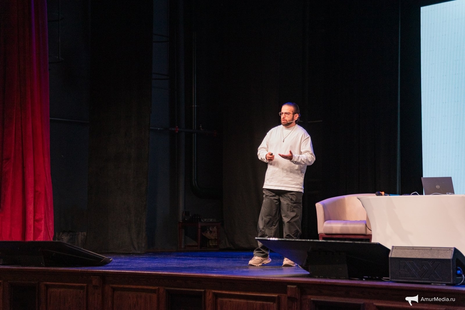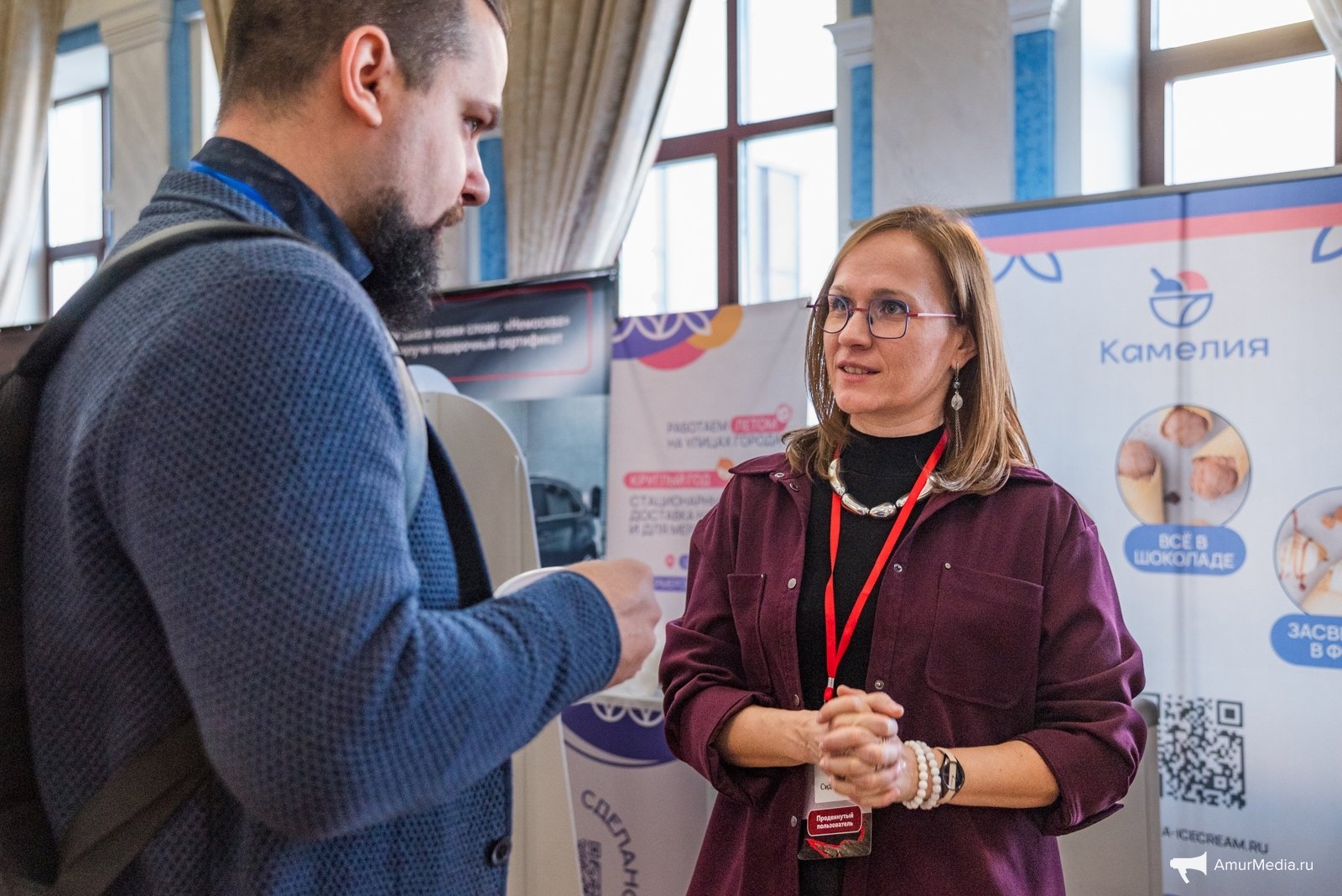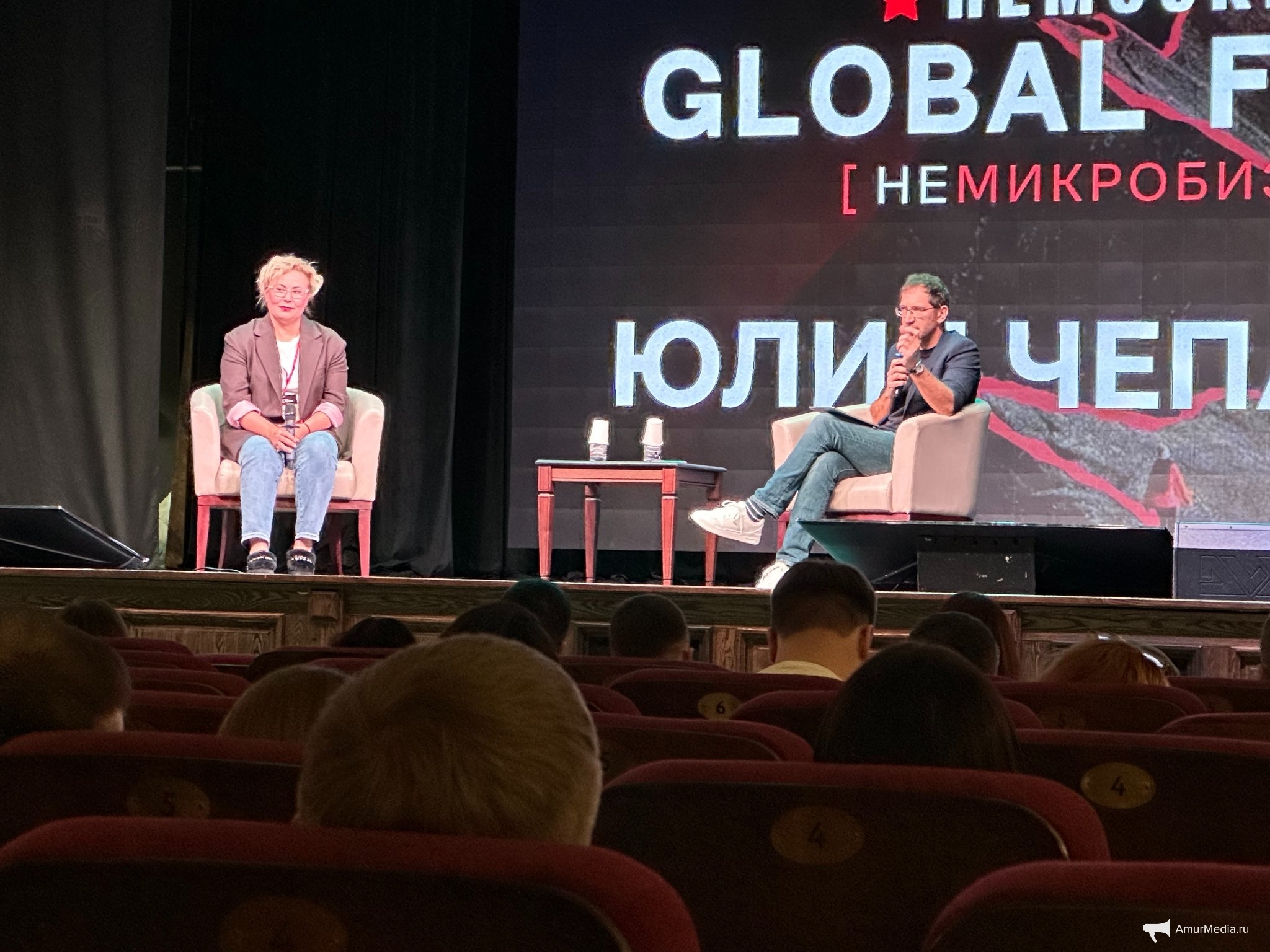 Интересных штрихом первого дня форума стало интервью с трёхкратной олимпийской чемпионкой Юлией Чепаловой, которое у нее взял хабаровский шоу-мен, артист Петр Нестеренко на главной сцене форума. Вопросы были разные, затрагивалась и личная жизнь, и путь к спортивному успеху.