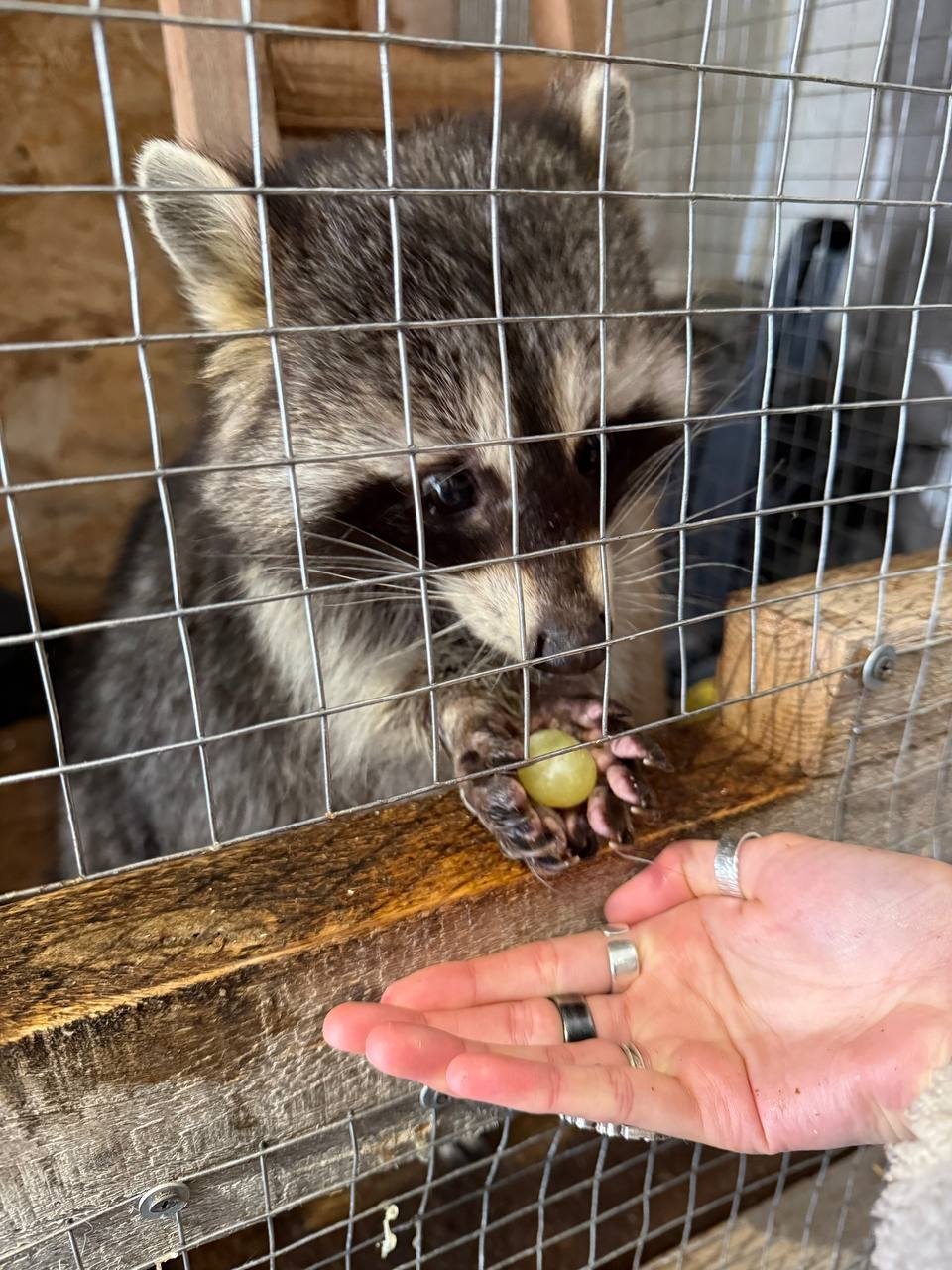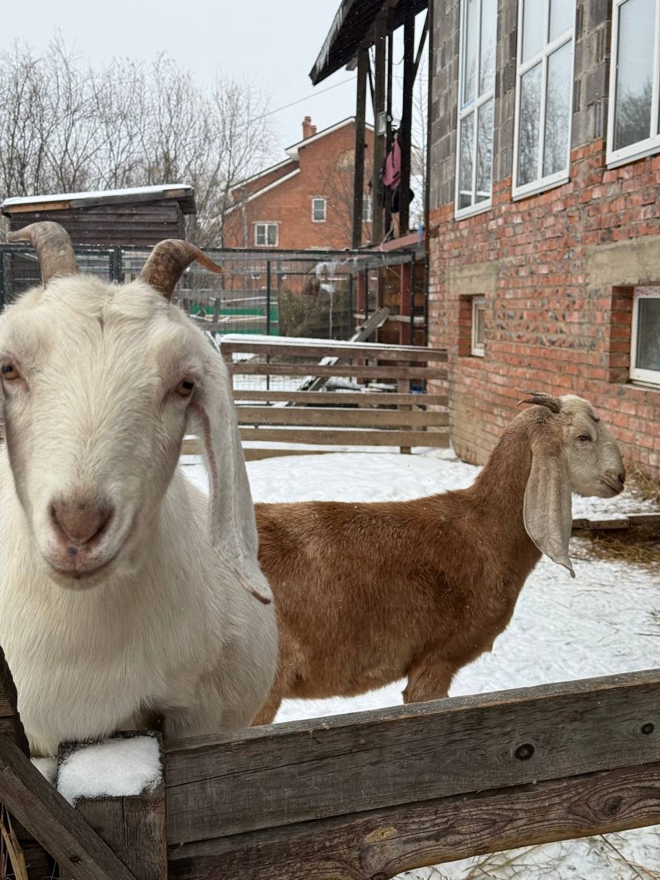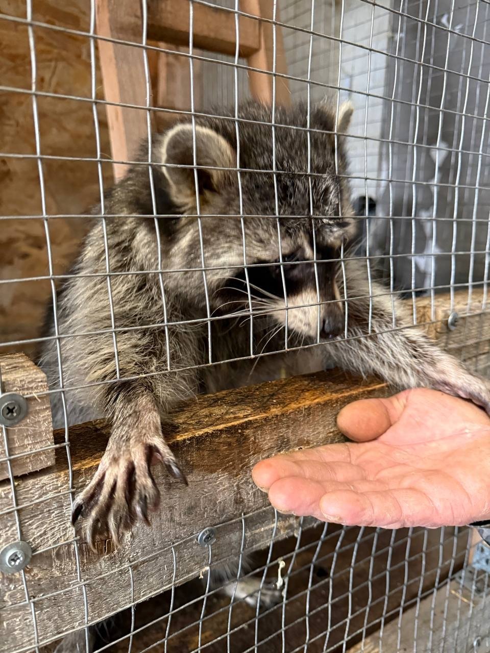 У входа нас встречают дружелюбные козочки, которые любопытно тянут мокрые носы к гостям. По соседству — озорные кролики. Чуть дальше — настоящие звезды фермы: лисицы и еноты. Лисички грациозно наблюдают за происходящим из своих вольеров, а еноты, напротив, стремятся оказаться в центре внимания, ловко перебирая лапками и пытаясь дотянуться до рук гостей.