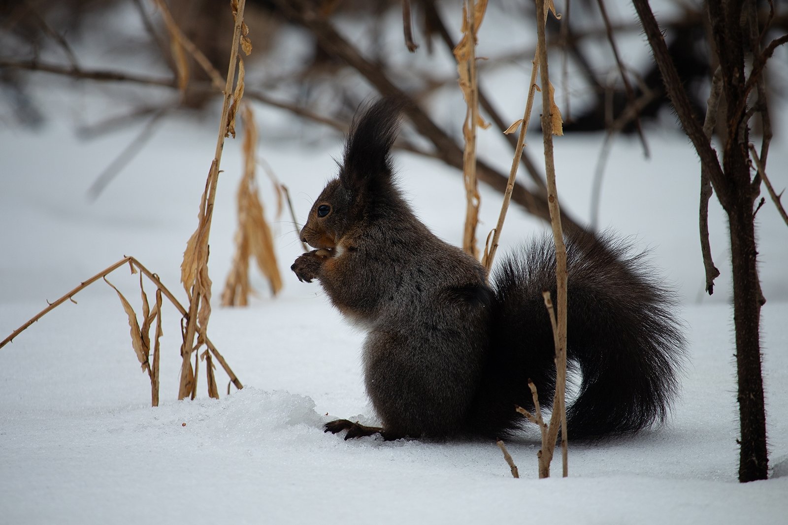 Есть тут и более крупные животные: лошади, с которыми можно познакомиться поближе и даже прикоснуться к шикарной гриве. А в закрытых амбарах зимуют пернатые: индюшки и другие птицы. В тепле отдыхают и самые маленькие обитатели — белки. Они устроились совсем рядом с баней — там у них собственный "домик", где можно заметить, как зверьки сладко спят, свернувшись клубком.