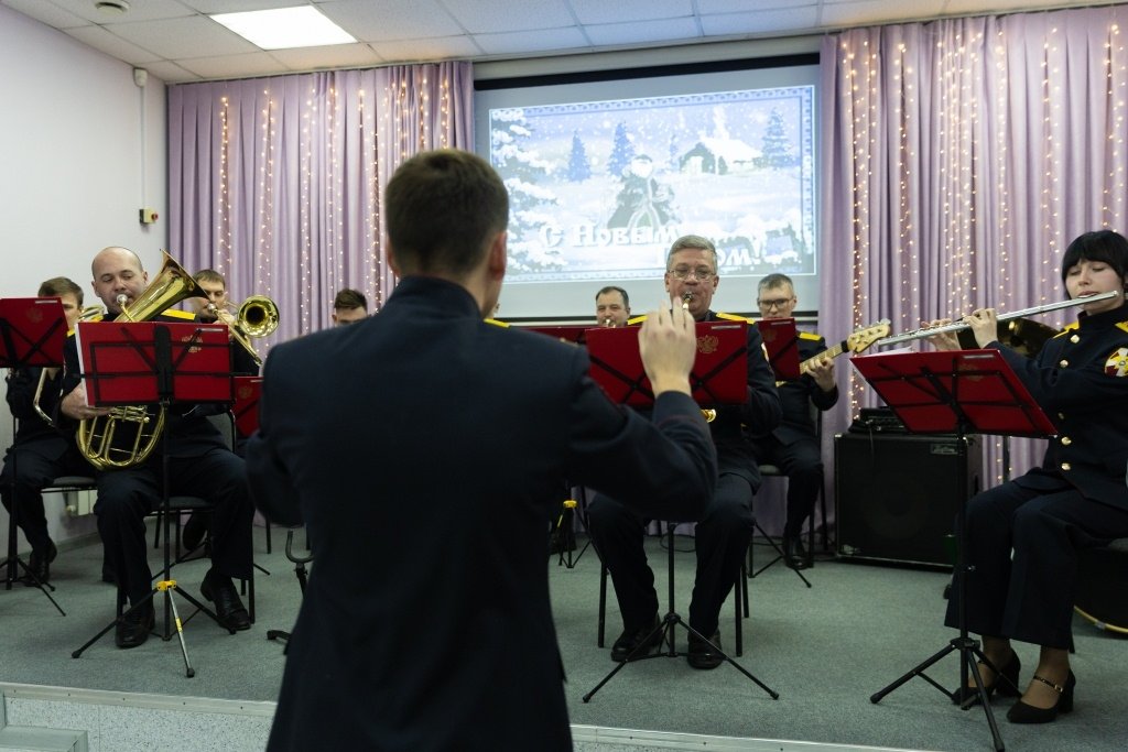 Для воспитанников с дальневосточной стороны выступил военный оркестр регионального управления Росгвардии. В программе — попурри из любимых отечественных мультфильмов, хороводы и песни вместе с Дедом Морозом и Снегурочкой. Сюрпризом для ребят стало выступление бельгийской овчарки-малинуа Вайпера в праздничном костюме. Кинолог ОМОН "Тигр" продемонстрировала мастерство своей четвероногой напарницы, вызвав восторг у детей.