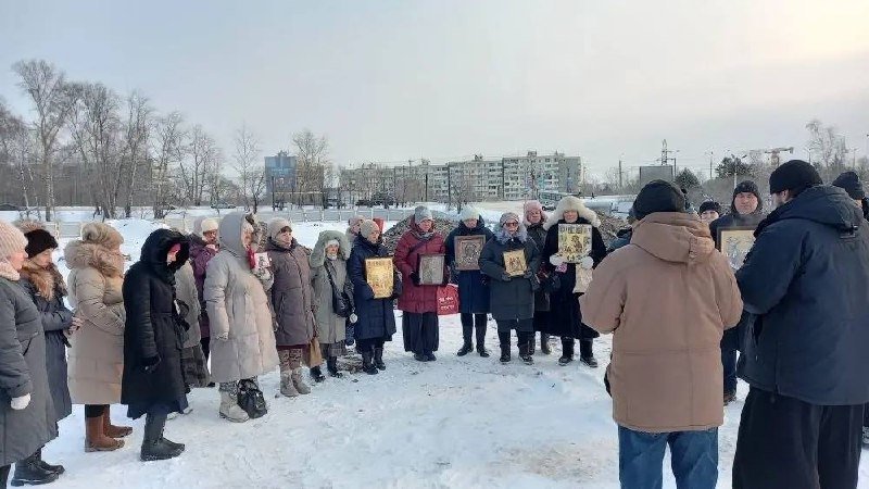 Каждое воскресенье после Божественной литургии прихожане храма-памятника в честь Казанской иконы Божией Матери вместе с настоятелем иереем Рустиком Карташовым совершают молебен на благое дело прямо на строительной площадке.
