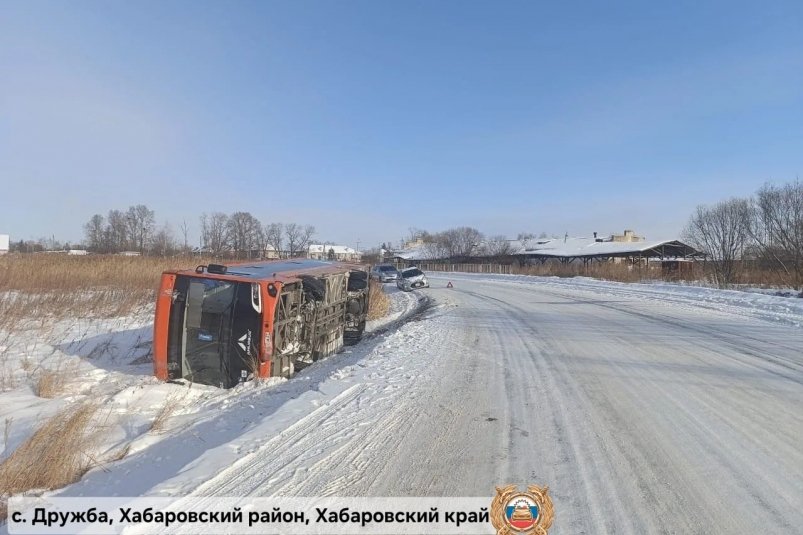 AmurMedia, 3 января. Согласно предварительной информации, сегодня в 10:45 возле дома 1б по улице Центральная, в селе Дружба, водитель маршрутного автобуса №102, следовавшего из Дружбы в направлении Некрасовки, потерял контроль над управлением. В результате этого транспортное средство съехало в кювет с правой стороны по ходу движения и перевернулось.