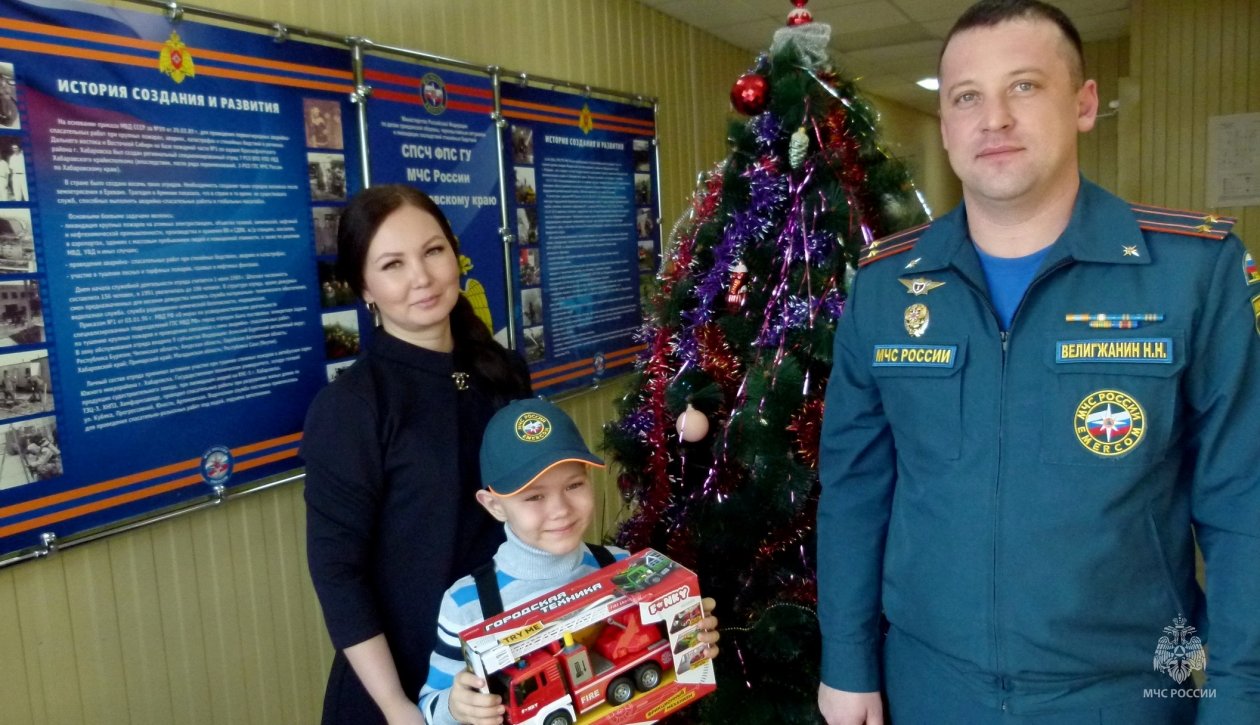 AmurMedia, 10 января. Юному хабаровчанину давно хотелось узнать побольше о работе сотрудников чрезвычайного ведомства. Его шар оказался на "Елке желания", организованной региональным отделением фонда "Защитники Отчества". Помог исполнить мечту вице-губернатор Хабаровского края Артем Мельников совместно с сотрудниками Специализированной пожарно-спасательной части (СПСЧ) МЧС России, сообщает пресс-служба ГУ МЧС России по Хабаровскому краю