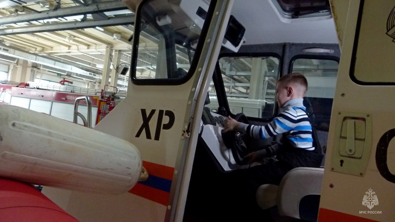 В СПСЧ Алеша увидел, как оперативно пожарные выезжают на реальный вызов, примерил их боевую одежду. С очень серьезным видом осмотрел технику, изучил кнопки управления в кабинах, попробовал поуправлять машинами. А так как часть не простая, а специализированная, то в арсенале сотрудников не только машины, предназначенные для тушения огня, но и катер, беспилотные летательные аппараты и другая техника. Ещё мальчик потренировался держать пожарный ствол, оказывать первую помощь пострадавшему. Кроме экскурсии ребенок очень был рад подарку — теперь у него есть своя пожарная машина. Она хоть и игрушечная, но в ней всё по-настоящему, и воду набирает, и сирену включает.