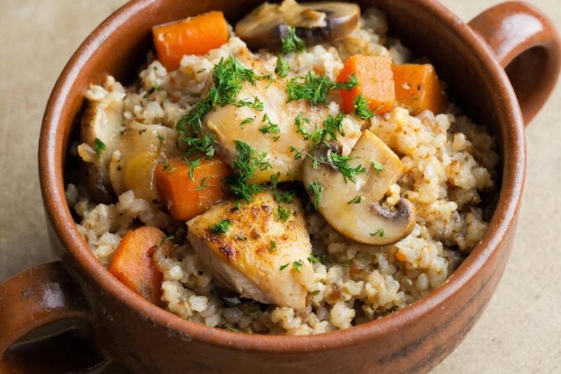 Понедельник, наступивший после долгих выходных, диктует свои правила, в том числе и в рационе питания. Еда должна быть простой, практичной, содержательной, дающей силы и удобной в употреблении. Старая, добрая гречка — отличный вариант. К ней добавим курятину, грибы и сливки. Вкус потрясающий!