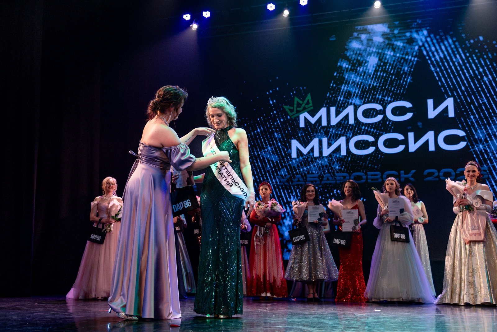 Шоу "Мисс и Миссис Хабаровск" (16+) прошло в "ДК Профсоюзов", объединив представительниц прекрасного пола различных возрастов и социального статуса, предоставив им возможность не только продемонстрировать себя на сцене, но и принять участие в программе, направленной на личностное развитие. Благо, шоу, которое было устроено для зрителей с участием конкурсанток, к этому располагало.