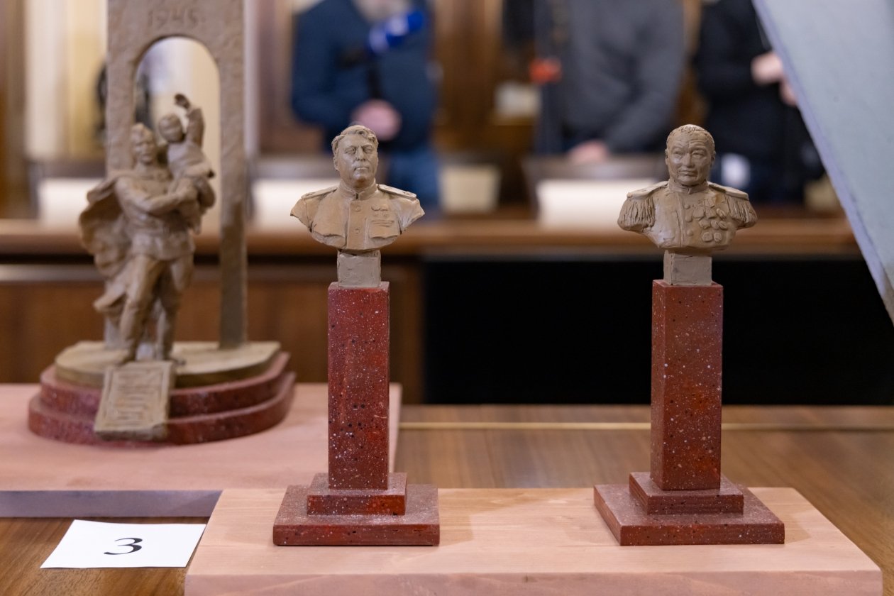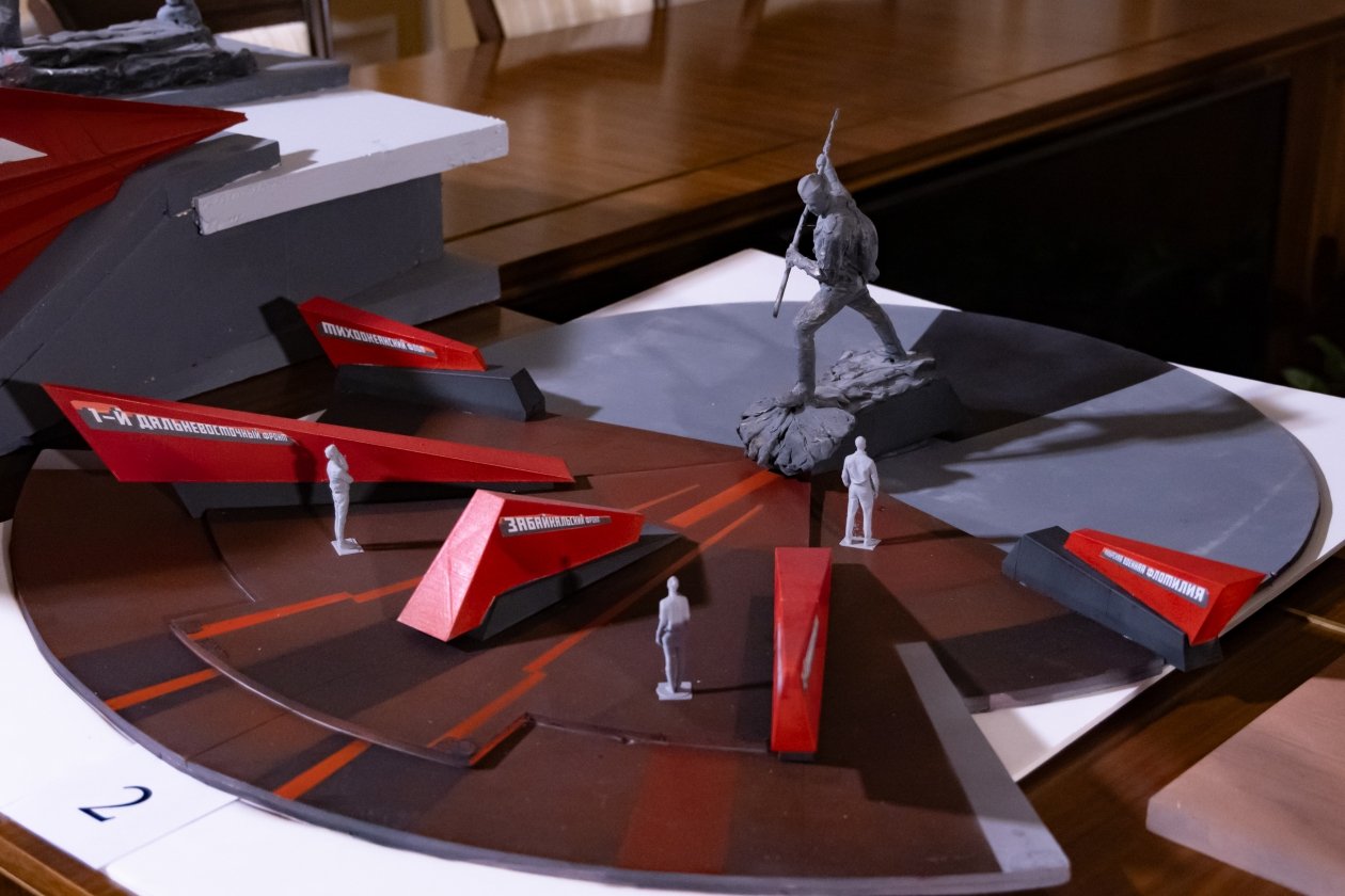 Для оценки экспертам было представлено семь визуализаций памятных знаков, из которых был выбран наиболее удачный вариант. В состав комиссии вошли: Владимир Мединский, занимающий пост помощника Президента РФ и председателя РВИО, губернатор Хабаровского края Дмитрий Демешин, а также Николай Овсиенко, заместитель начальника Управления Президента по государственной политике в гуманитарной сфере и заместитель председателя РВИО.