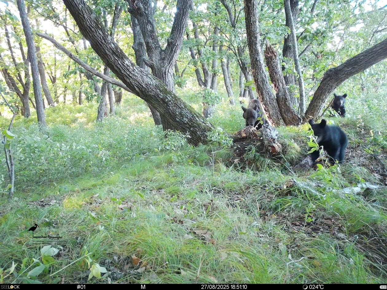 "Информация на чудом уцелевшей карте памяти показала, что вандалом, покусившимся на прибор, оказался бурый медвежонок, проходивший вместе с братцем и медведицей-матерью мимо фотоловушки. Мать с братом прошли стороной, а вот он разглядел необычный нарост на дереве и решил попробовать его на зуб. В общей сложности, эта фотоловушка отработала около двух недель", — рассказал ведущий научный сотрудник ФГБУ "Заповедное Приамурье" Константин Шайдуров.