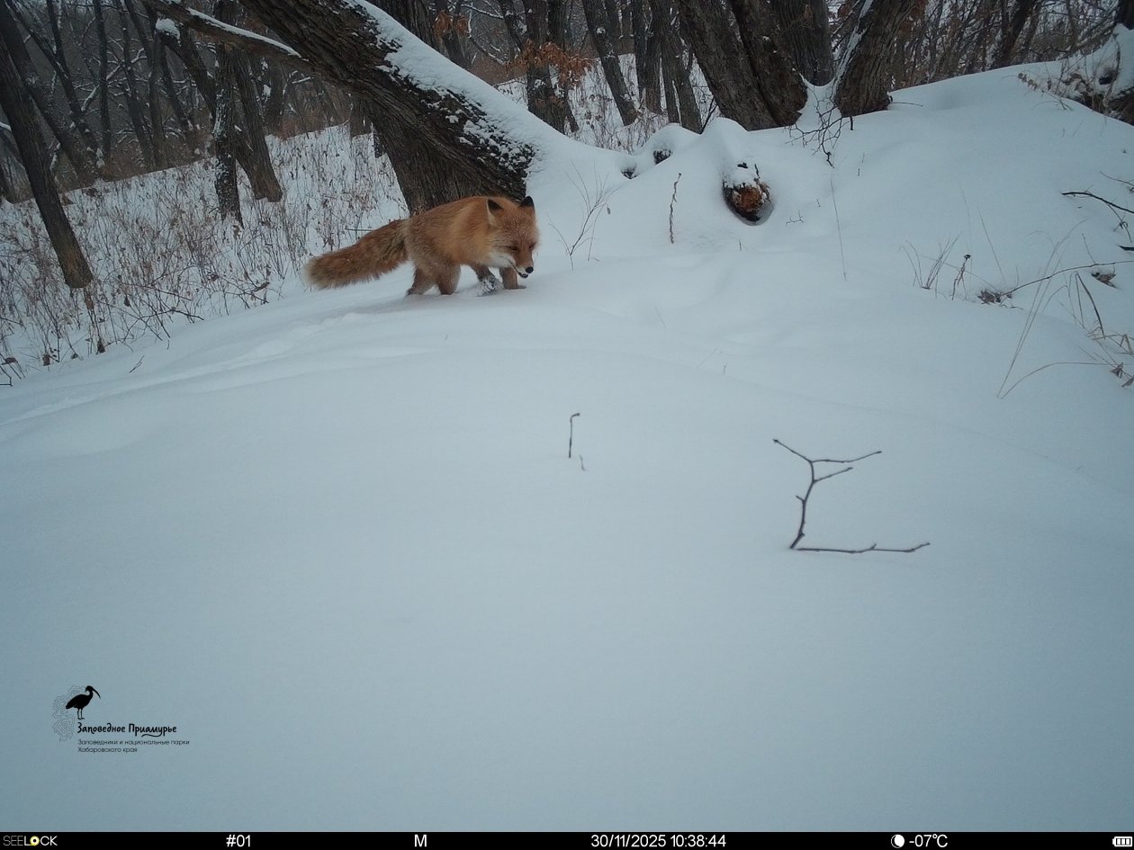 AmurMedia, 27 января. Первые в наступившем году полевые работы провели сотрудники научного отдела ФГБУ "Заповедное Приамурье" в юго-западной части заповедника "Большехехцирский" в Хабаровском крае. Проверяя работу фотоловушек, установленных летом 2025 года в этой части заповедника, ученые обнаружили, что кто-то их уже "опередил": одну из ловушек — открыл, вытащил почти половину батареек и почти извлёк карту памяти, сообщает ФГБУ "Заповедное Приамурье"