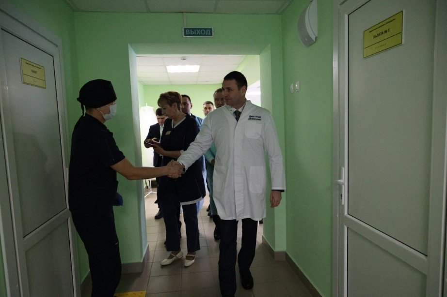 Глава региона осмотрел уже отремонтированные помещения стационара районной больницы: отделение скорой помощи, лабораторию, терапевтическое и хирургическое отделения. Работы на двух этажах были проведены в 2023-2024 годах в рамках региональной программы "Модернизация первичного звена здравоохранения", стоимость составила 70 млн рублей.