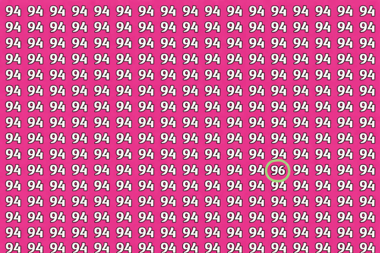 С первого взгляда кажется, что все они абсолютно идентичны, но это ловушка для внимания. Среди них спрятан один "чужак": одно из чисел только притворяется цифрой 94.