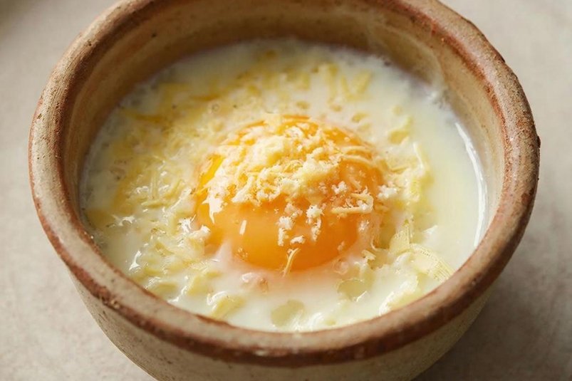 Запечённые яйца со сливками и сыром приготовятся быстро, пока вы делаете мелкие утренние дела.