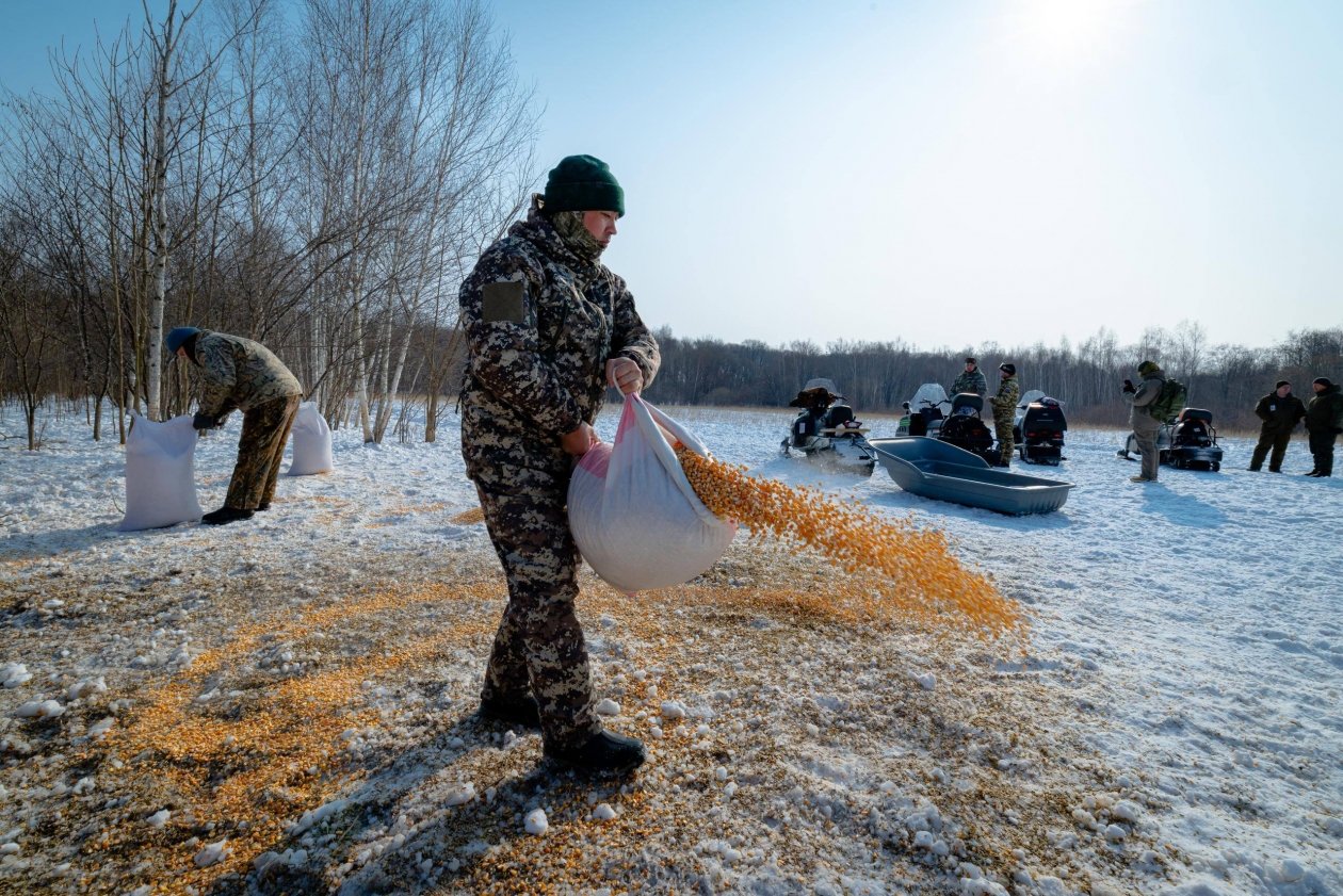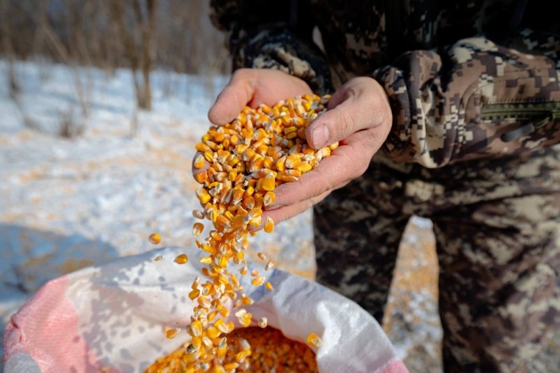 Первое, что делают спеиалисты — покупают вкусняшки. В этом сезоне Центр закупил у приморских фермеров около 205 тонн кормовой кукурузы и овса. Зерно передали в охотничьи хозяйства, а также в Лазовский и Сихотэ-Алинский заповедники. В случае ухудшения погодных условий объёмы помощи могут быть увеличены.