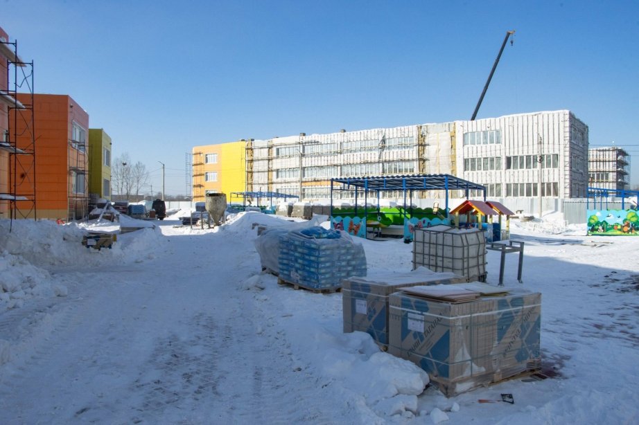 На сегодняшний день строительная готовность объекта составляет 74%. На объекте ведутся работы сразу по нескольким направлениям: утепление фасада, внутренняя отделка, прокладка внутренних инженерных сетей. Практически завершен монтаж окон.