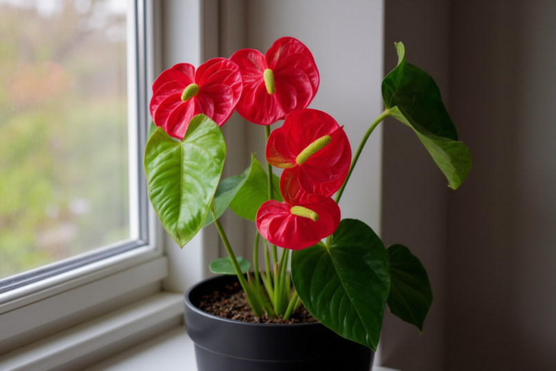 Освещение также играет ключевую роль. В конце зимы световой день увеличивается, и антуриуму нужен яркий, но рассеянный свет. Лучше всего подойдут восточные или северо-западные окна. Если растение стоит на южной стороне, его стоит притенять, чтобы не было ожогов листьев.