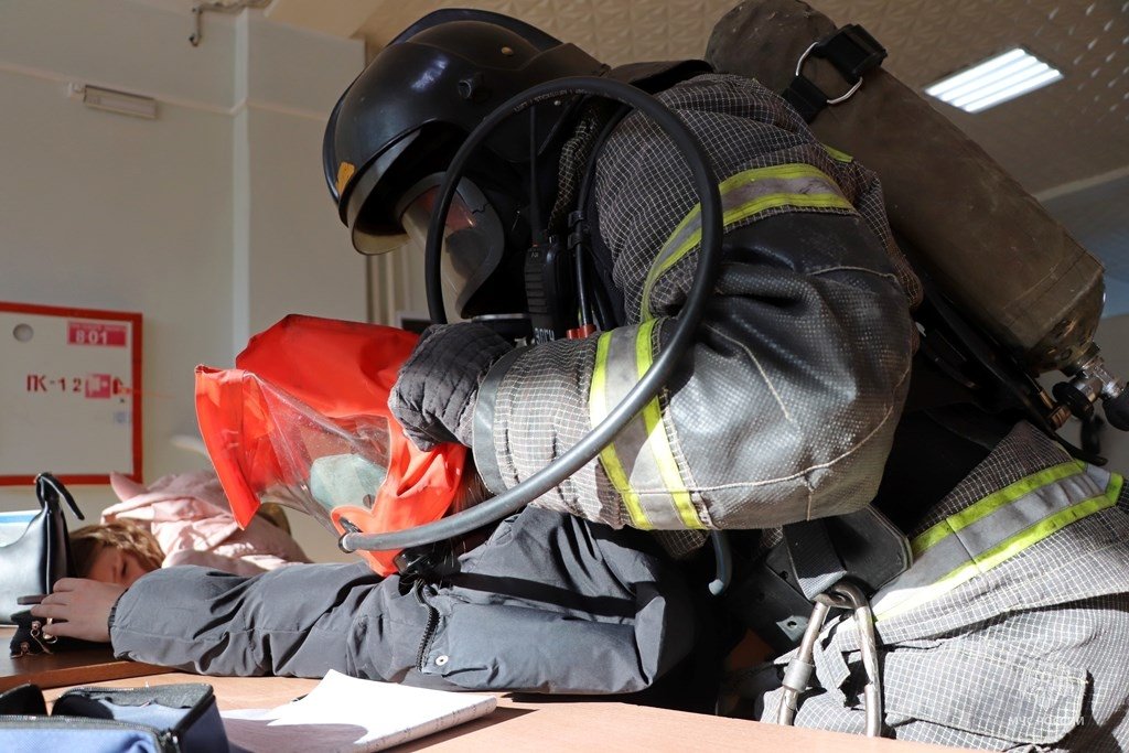 Согласно легенде в библиотеке произошло возгорание, в одном из кабинетов на втором этаже остались 2 пострадавших, которые из-за сильного задымления не смогли самостоятельно выбраться из здания. Остальные студенты и преподаватели после срабатывания датчиков автоматической пожарной сигнализации покинули учебное заведение.