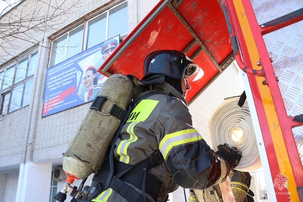 "В Хабаровском техникуме транспортных технологий имени героя Советского союза А.С. Панова сотрудники пожарно-спасательного гарнизона краевого центра провели учение", — говорится в сообщении.