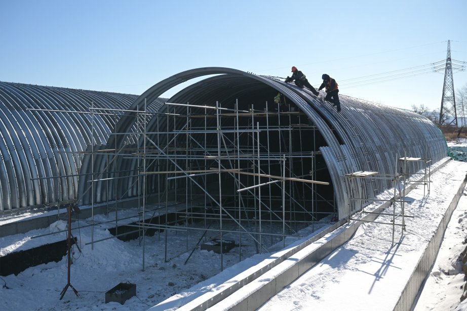 На пикете 28 продолжается устройство железобетонного ростверка — конструкции, распределяющей нагрузку от сооружения на сваи и повышающей его надежность. В условиях отрицательных температур выполнено около 88% от проектного объема. Здесь же ведется монтаж двухпролетной сводчатой части арочного моста из гофрированного металла: смонтировано свыше 150 тонн конструкций (более 85% от общего объема). После завершения работ этот каркас обеспечит безопасный проезд транспорта.