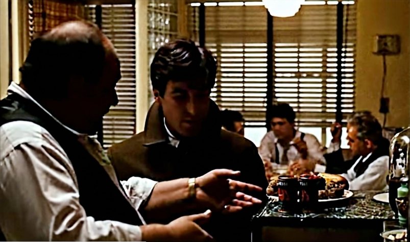И так, Питер Клеменца учит итальянской кулинарии молодого Майкла Карлеоне, сына главы клана.