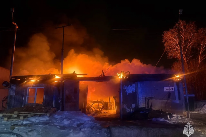 В Хабаровске сгорел склад с автомобильными маслами. Фото: Пресс-служба ГУ МЧС России по Хабаровскому краю