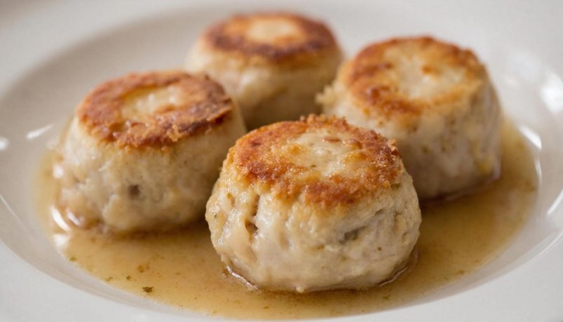 В основе этих сочных тефтелей лежит деликатный фарш из белой рыбы с луком, дополненный тёртой морковью и отварным рисом. Аппетитные шарики сначала подрумяниваются на сковороде, после чего томятся в духовке в нежной сливочно-укропной заливке.