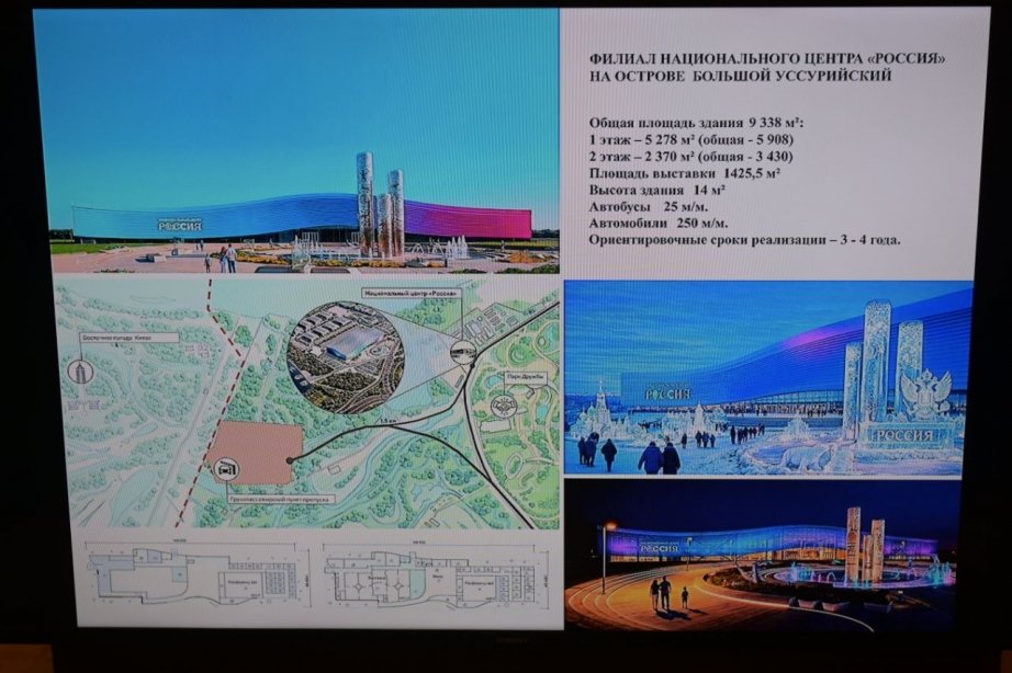 Среди первоочередных проектов на Большом Уссурийском — парк Дружбы народов, филиал Национального центра "Россия", российско-китайский инновационный технопарк и другие. В частности, в ближайшее время региону предстоит защитить на федеральном уровне концепцию филиала Национального центра "Россия". Реализация проекта позволит привлекать дополнительно до 500 тысяч китайских туристов ежегодно. Центр будет направлен на укрепление национальной идентичности и демонстрацию достижений страны.