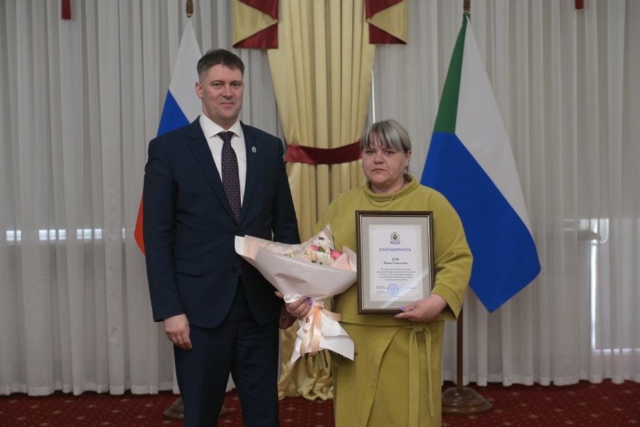 На приеме зампред по вопросам строительства вручил работникам отрасли почетные грамоты и благодарности губернатора края. Наград удостоились 12 лучших работников ЖКХ и бытового обслуживания. Почетное звание "Заслуженный работник жилищно-коммунального хозяйства Хабаровского края" присвоено главному инженеру МУП "Янтарь" Ванинского района Антону Манирке.