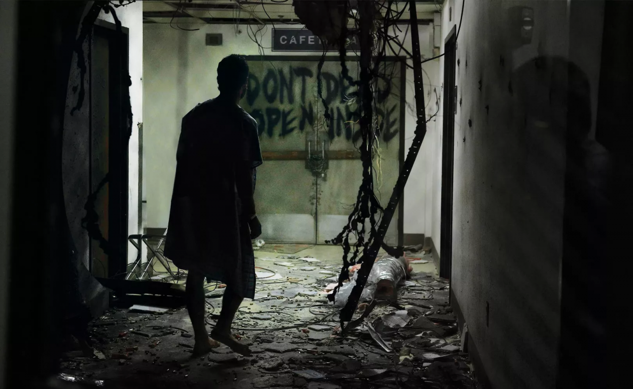 Вспомнить хотя бы сцену из образцового зомби-хоррора "28 дней спустя" (18+), где герой Киллиана Мерфи просыпается в больнице и бредет по заброшенным улицам (ох, как же зловеще это выглядело). Похожая сцена, кстати, встречается и в сериале "Ходячие мертвецы" (18+): больничный халат, полное непонимание происходящего и ужас от того, что ты один на один с жуткими чудищами, мечтающими поживиться человеческой плотью (но все это лишь оммаж).
