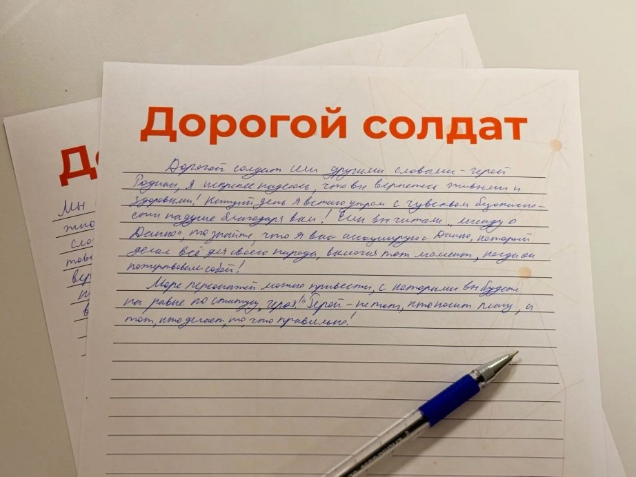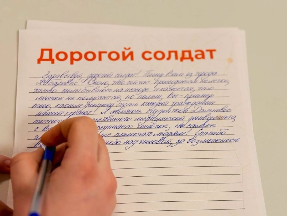 "Здравствуй, дорогой солдат. Пишу вам из города Хабаровска. Я знаю, что сейчас вам приходится нелегко, и может казаться, что многое идёт не по плану. Но знайте, вы — пример того, каким должен быть каждый гражданин нашей страны. Спасибо вам за мирное небо над головой, за возможность заниматься любимым делом и знать, что я нахожусь в полной безопасности — под вашей защитой. С вами нас объединяет многое, но самое главное — желание помогать людям. Желаю, чтобы все задуманное в вашей жизни осуществлялось, а неприятностей было как можно меньше. Пусть удача всегда будет рядом с вами. И знайте, вас ждут дома", — написала в своем письме Софья Василенко.
