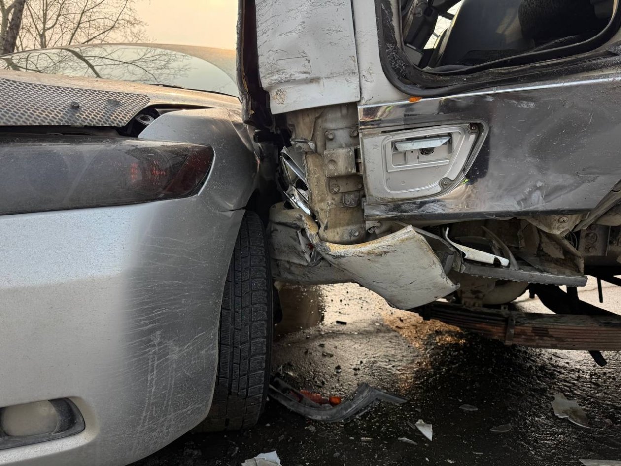 "Сегодня в 07:35 водитель автомобиля Toyota Master Ace Surf, двигаясь по ул. Павловского со стороны ул. Вагонная в сторону ул. Копровая, не обеспечила постоянный контроль над управлением транспортным средством на скользком участке дороги, допустив столкновение с Hino Ranger, который двигался во встречном направлении. В результате деформации левого переднего колеса Hino Ranger продолжил неконтролируемое движение и допустил столкновение со встречной Toyota Camry", — говорится в сообщении.