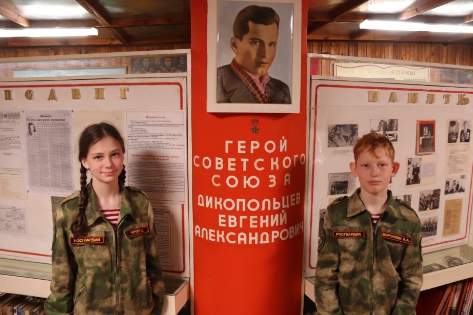 Так, сегодня в музее боевой славы хабаровской школы № 62, носящей имя героя Советского Союза Евгения Александровича Дикопольцева, состоялось тематическое мероприятие. Руководитель музея Павел Белых вместе с учащимися провел для школьников занятие о Герое Советского Союза Евгении Дикопольцеве.