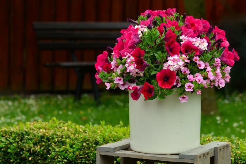 Если все сделать в срок и без спешки, к маю петуния превратится в пышный куст. А к июню она уже будет цвести так густо, что зелени почти не будет видно.