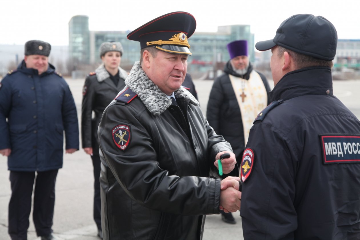 Далее в своем приветственном слове Андрей Шабашов подчеркнул, что вручение ключей от новых служебных автомобилей является значимым событием, улучшение условий работы и материально-техническое обеспечение подразделений — это неотъемлемая часть деятельности Министерства внутренних дел Российской Федерации.