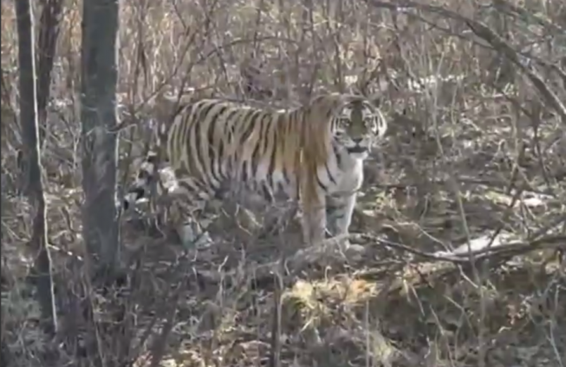 AmurMedia, 1 апреля. Центр "Амурский тигр" опубликовал видео неожиданной встречи девушек с полосатым хищником. Огромный тигр сквозь заросли леса смотрел на дорогу, при этом зверь то ли рычал, то ли урчал.