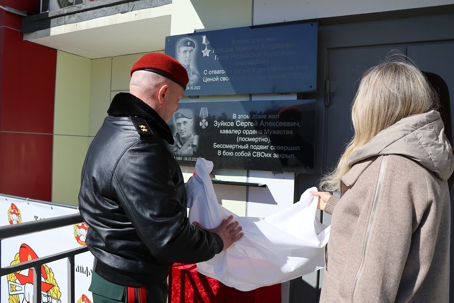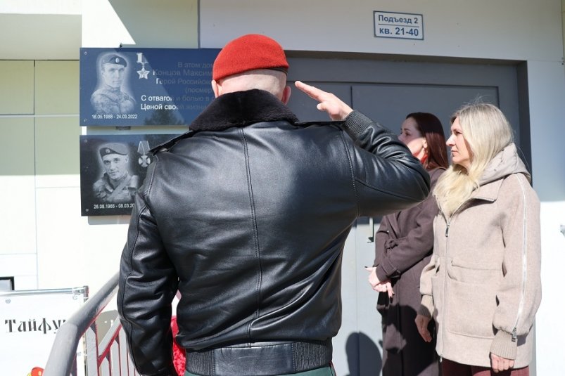 AmurMedia, 1 апреля. На территории отдельного отряда специального назначения "Тайфун" Восточного округа Росгвардии состоялась церемония открытия мемориальных табличек на доме, где проживали Герой Российской Федерации лейтенант Максим Концов и Кавалер ордена Мужества старший лейтенант Сергей Зуйков. Спецназовцы погибли при выполнении воинского долга в ходе проведения специальной военной операции, сообщает пресс-служба ВО ВНГ РФ.