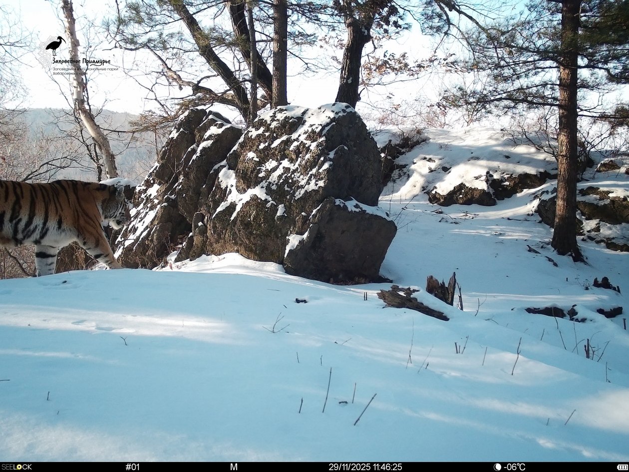 — Кроме амурского тигра на учётах отмечена рысь, причём на нескольких участках Большого Хехцира, — уточнила ведущий научный сотрудник ФГБУ "Заповедное Приамурье" Ирина Никитина. — Этот вид хорошо приспосабливается и спокойно уживается с другими хищниками. За последние годы рысь даже появилась в заповеднике "Болоньский". Она попала в кадр фотоловушки летом и отмечена на зимнем учёте, хотя обычно предпочитает скалистые и горные леса.