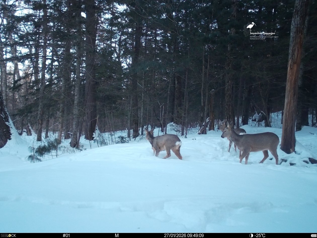Им удалось выяснить, что высота снежного покрова в этом году, в отличие от более северных территорий, средняя — около 40 см, что позволяет копытным свободно перемещаться по угодьям. Несмотря на это, численность изюбря и косули — биоресурсов не только для человека, но и для хищников — по сравнению с прошлым годом и декабрьским учётом снизилась. Исключение составляет кабан.