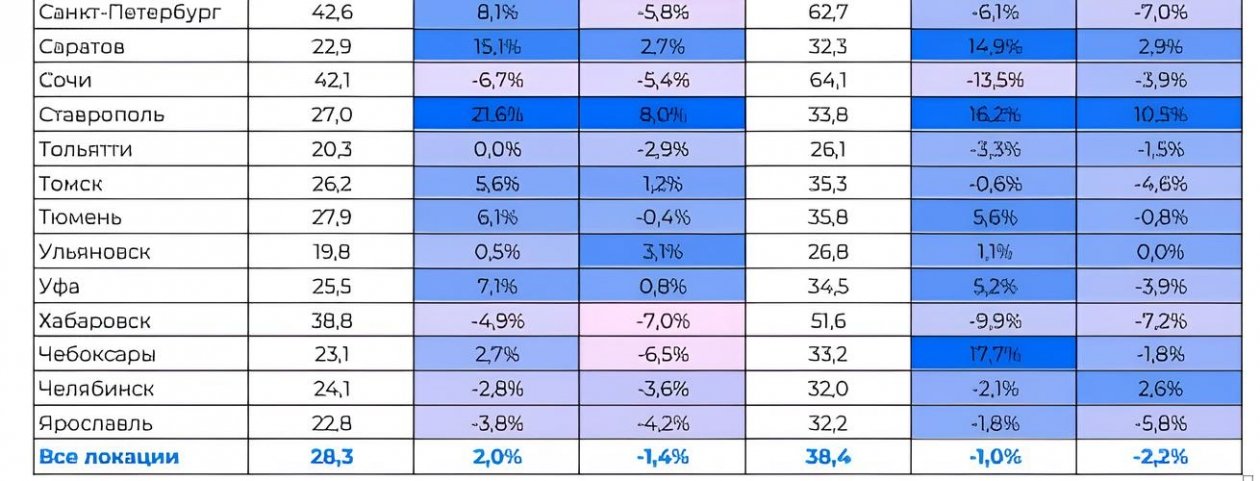 Эксперты отмечают сезонное снижение цен, начавшееся ещё в конце 2025 года, а также высокий базовый уровень ставок, который не всегда соответствует доходам населения. В целом тенденция сохраняется во многих крупных городах: падение цен зафиксировано в 30 из 40 анализируемых городов, включая Чебоксары, Екатеринбург, Новокузнецк и Пермь.