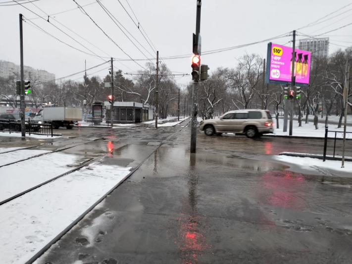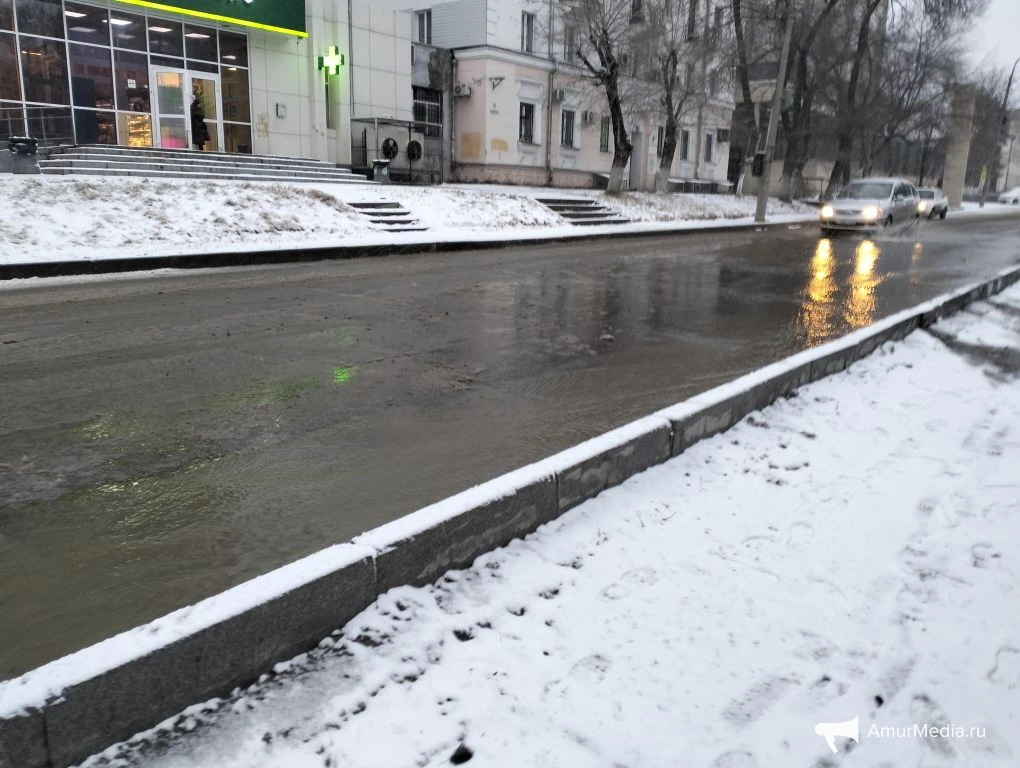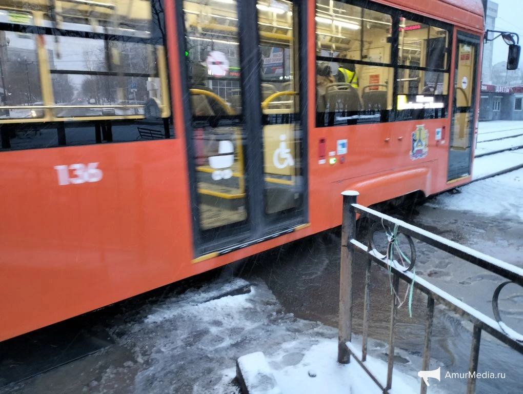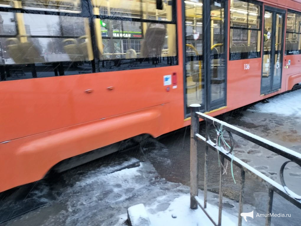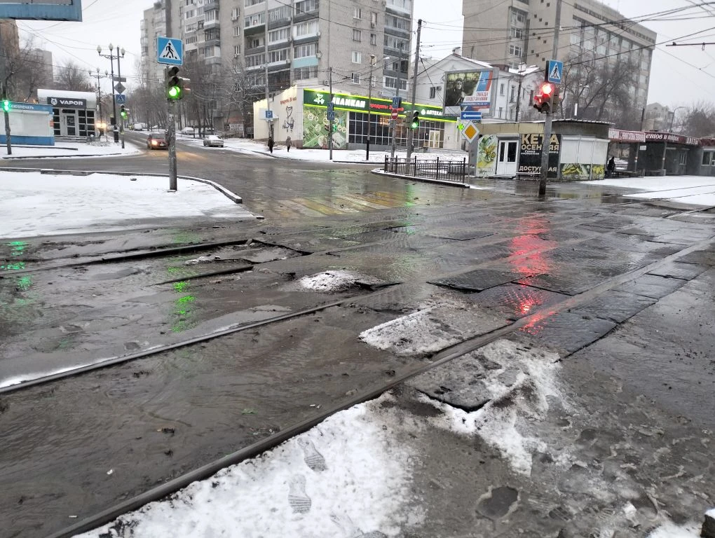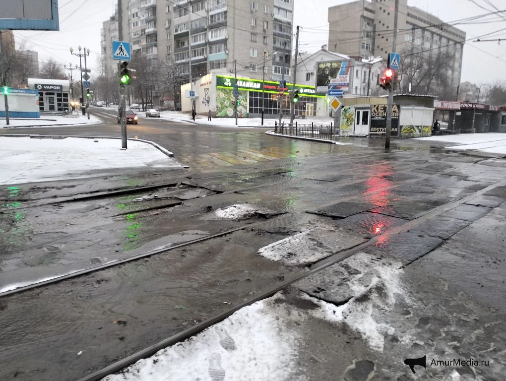 AmurMedia, 6 апреля. Сегодняшнее утро для многих началось не с кофе, а с очередной коммунальной аварии на пересечении Амурского бульвара и улицы Льва Толстого. Вода бежит по трамвайным путям, заливает улицу и дорогу. А тут ещё снег с дождём — настоящий квест, чтобы просто выйти из дома или дойти до работы.