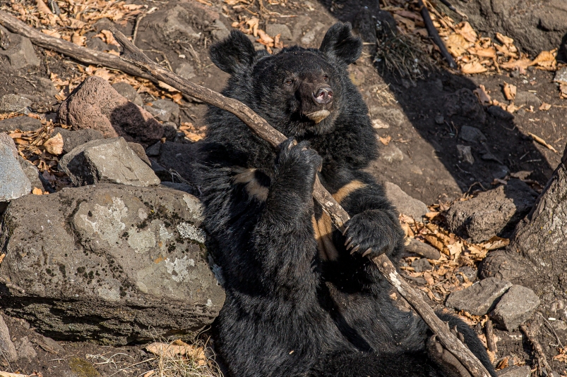 Косолапый смотрит на мир иначе, нежели люди, работающие в заповеднике. Плакаты он срывал, а некоторые и на зуб пробовал, что видно на фотографиях. Мишка оставил улики — на шляпке гвоздика повис клок шерсти.