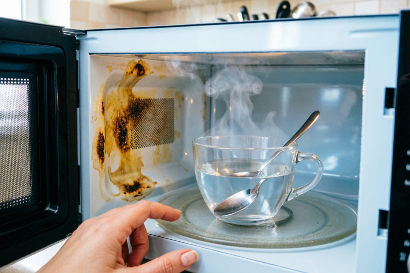 Чтобы повторить этот лайфхак, возьмите стакан (200–250 мл) обычной воды и добавьте в него 1 чайную ложку лимонной кислоты. Хорошо перемешайте до растворения крупиц, поставьте стакан в центр микроволновки и включите её на максимальную мощность на 2–3 минуты.